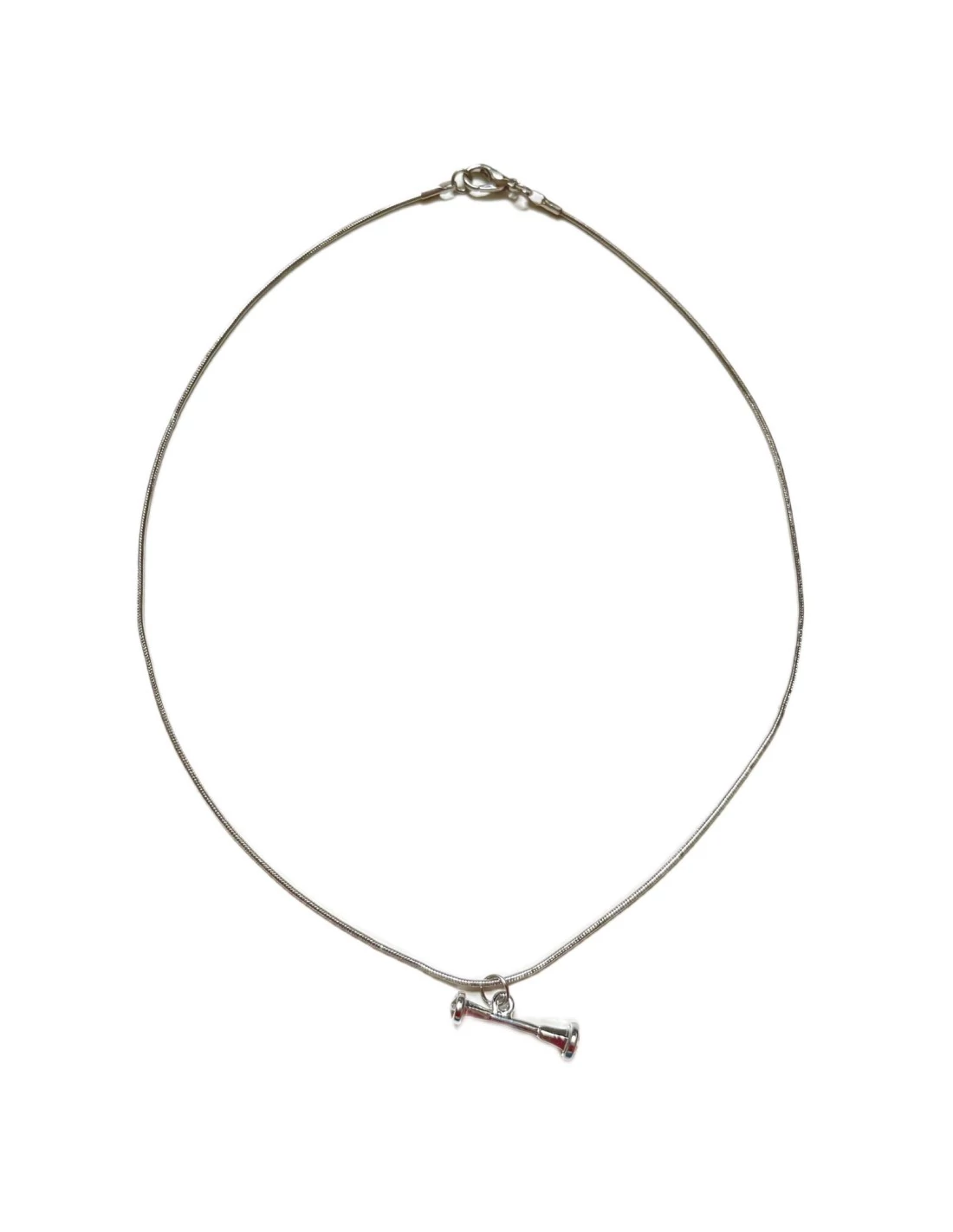 Ezüst színű rozsdamentes acélból készült nyaklánc hozzá tartozó bot medállal.
